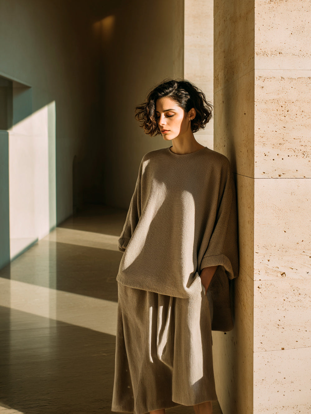 Cada colección de Tunica se construye como un sistema: pocas piezas, bien pensadas, que dialogan entre sí y con el paso del tiempo. Siluetas amplias, materiales honestos y una estética despojada dan forma a prendas que funcionan igual en casa, en la ciudad o en tránsito. La marca no explica ni impone; confía en un usuario que ya filtró el exceso, que valora el silencio, el uso real y el diseño que envejece bien. Tunica no grita identidad. La encarna.